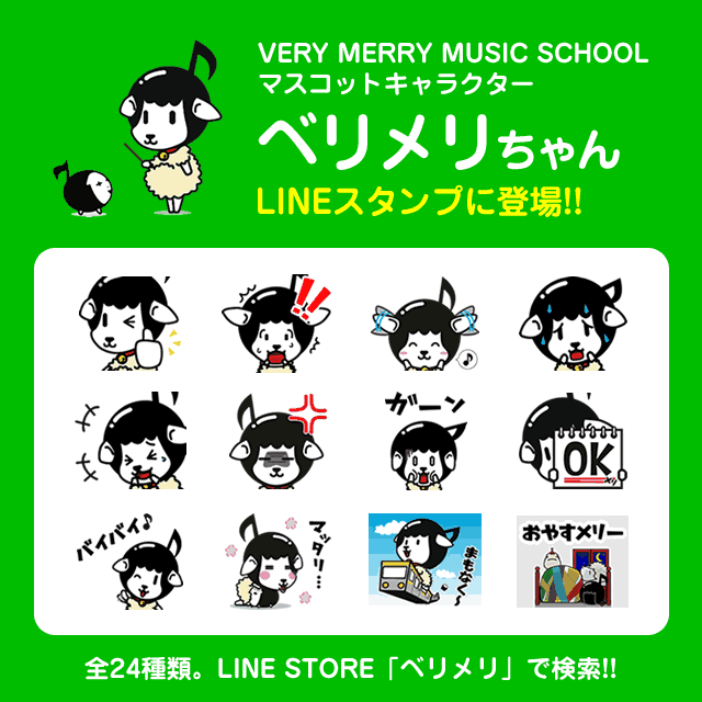 VERY MERRY MUSIC SCHOOL(ベリーメリーミュージックスクール)のマスコットキャラクター「ベリメリちゃん」のLINEスタンプが登場しました。