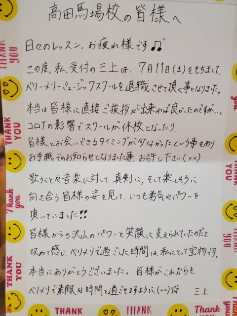 『ベリーメリーミュージックスクール』高田馬場校の三上です。